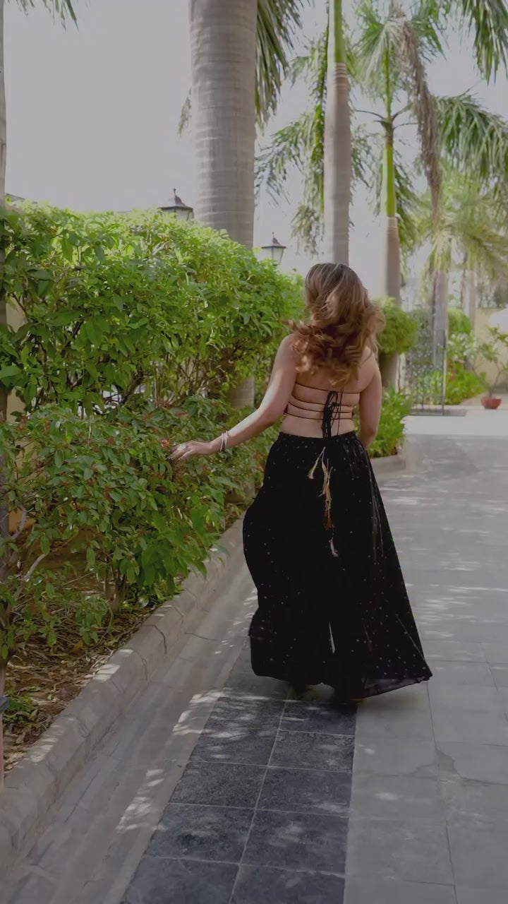 Stylish Black Embroidered Top & Pure Butti Flairy Palazzo Set